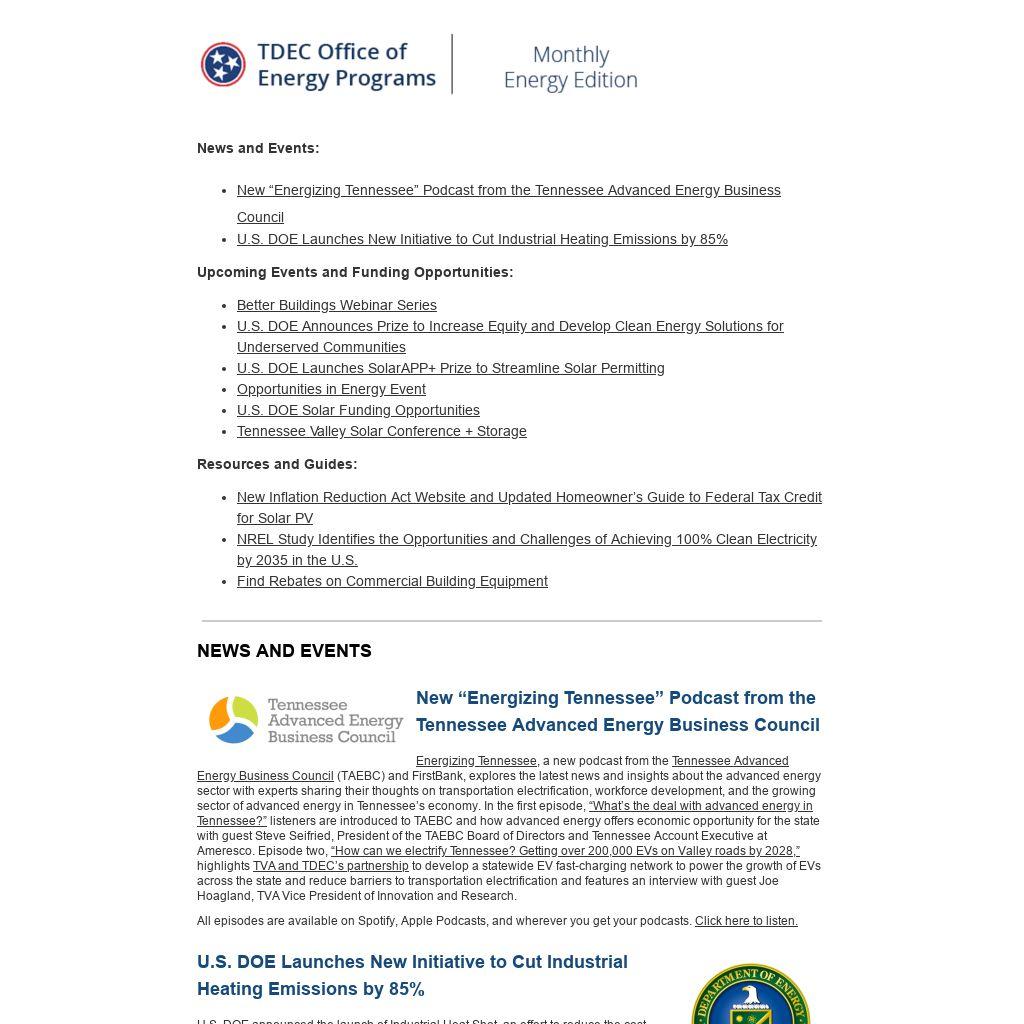 | New “Energizing Tennessee” Podcast from the Tennessee Advanced Energy Business Council