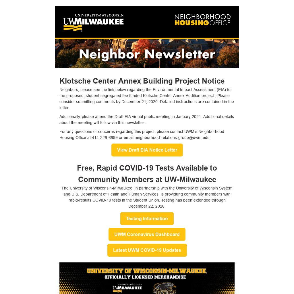 For any questions or concerns regarding this project, please contact UWM’s Neighborhood Housing Office at 414-229-6999 or email neighborhood-relations-group@uwm.edu.