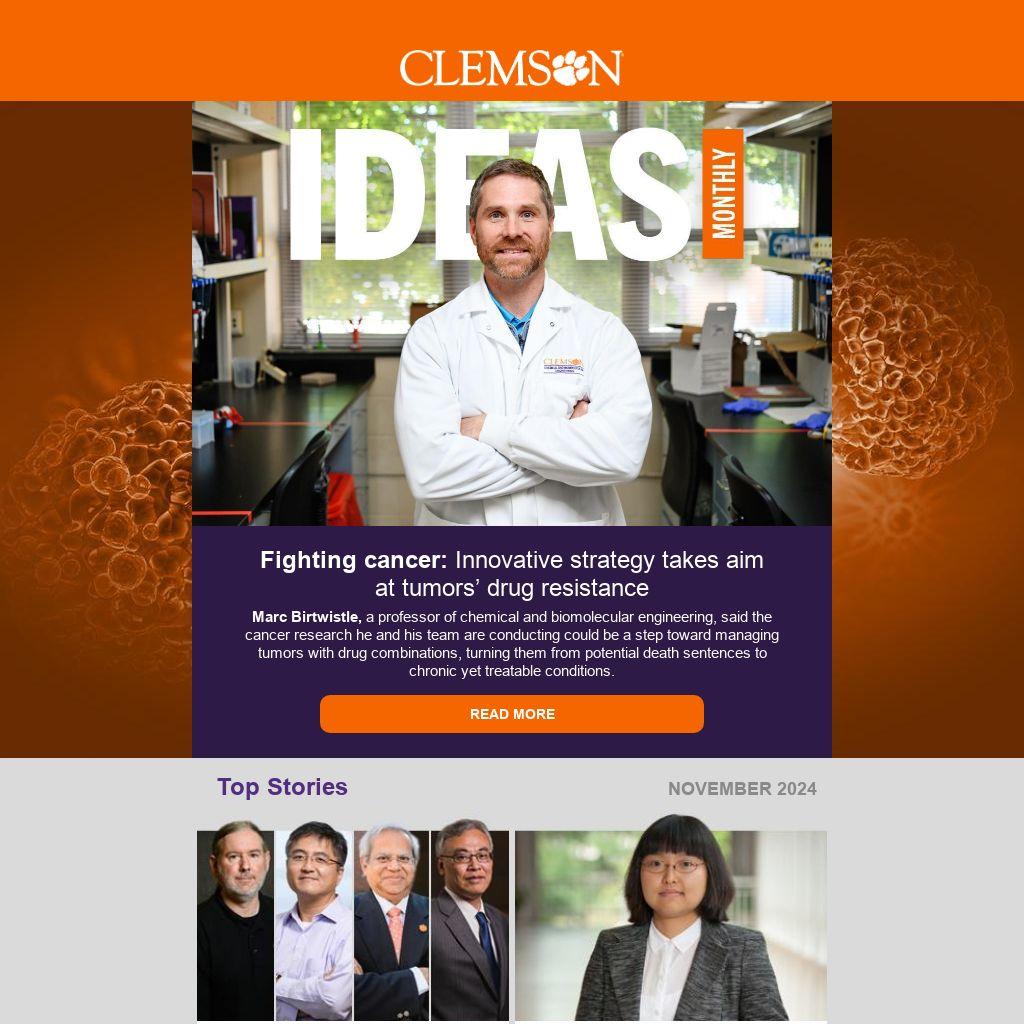 Inquiry and Discovery in Engineering and Science (IDEAS) Monthly is published by the PROMO Office in Clemson University’s College of Engineering, Computing and Applied Sciences. Contact the team with feedback or story suggestions.