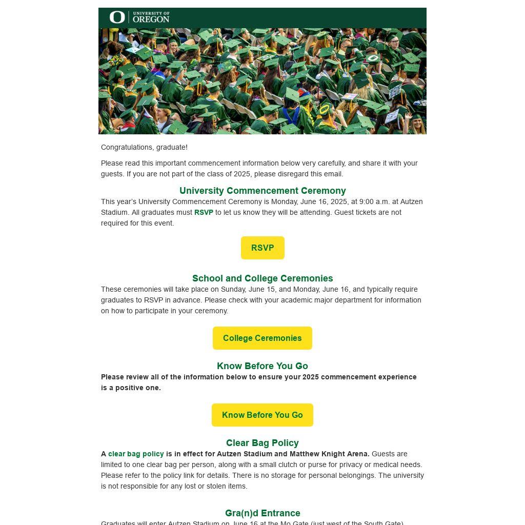 - Parking will be at Autzen Stadium