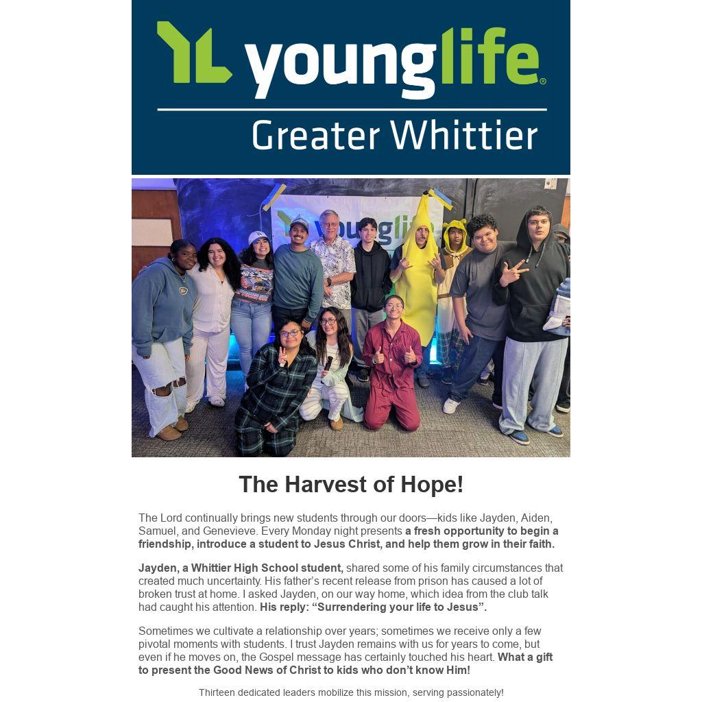 Thank you for empowering us through your prayers and financial gifts to preach the Gospel to un-churched youth and help them grow in their faith. None of this would be possible without you!