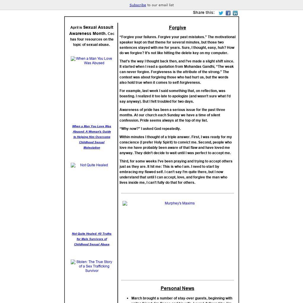 “Forgive your failures. Forgive your past mistakes.” The motivational speaker kept on that theme for several minutes, but those two sentences stayed with me for years. Sure, I thought, easy, huh? How do we forgive? It’s not like hitting the delete key on my computer.