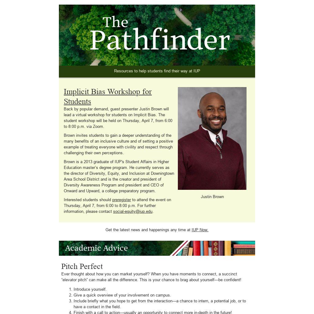 Back by popular demand, guest presenter Justin Brown will lead a virtual workshop for students on Implicit Bias. The student workshop will be held on Thursday, April 7, from 6:00 to 8:00 p.m. via Zoom.