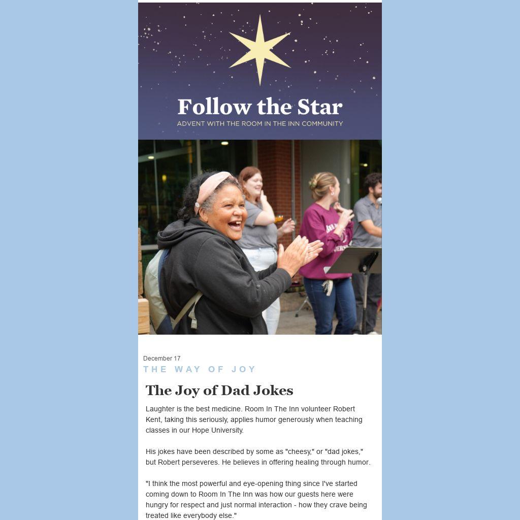 Robert's gift of humor is a lesson in treating others how we want to be treated - finding joy in laughing (and maybe cringing) together in community.