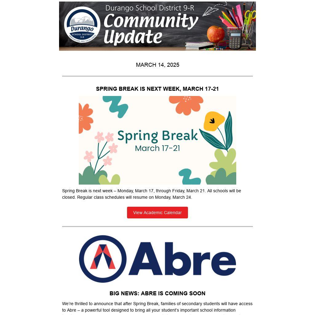 We believe that strong partnerships between schools and families lead to student success, and Abre is here to support that connection. Keep an eye out for a letter from your principal after Spring Break with details on how to get started.