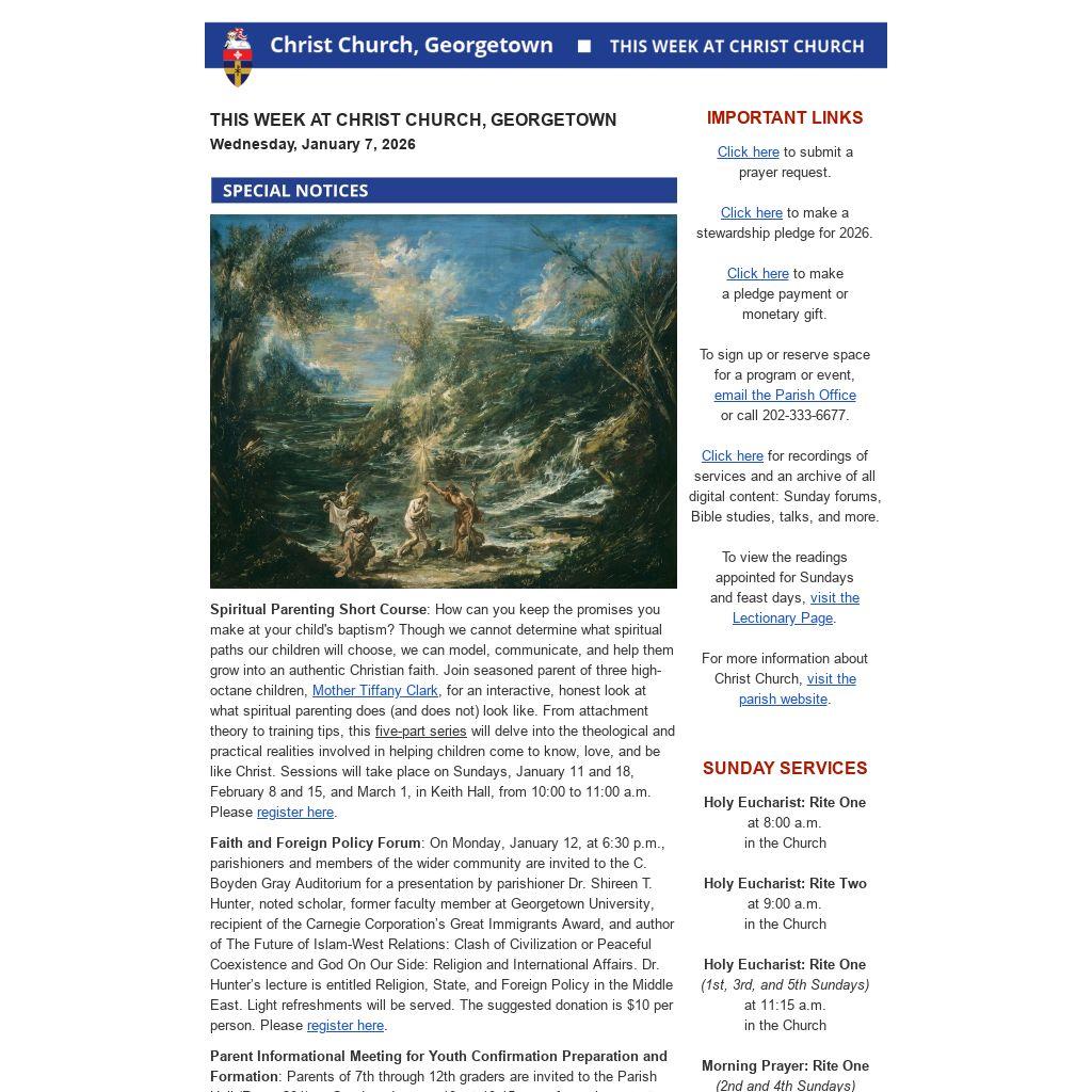 THIS WEEK AT CHRIST CHURCH, GEORGETOWN Wednesday, January 7, 2026