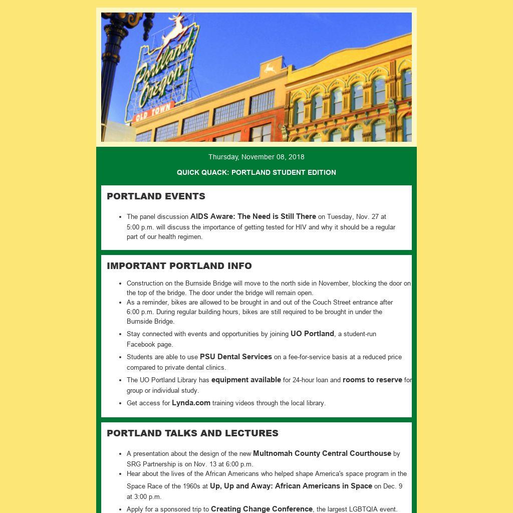 Stay connected with events and opportunities by joining UO Portland, a student-run