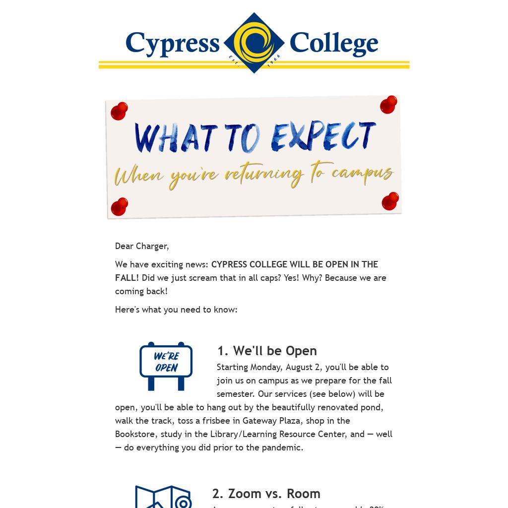 Starting Monday, August 2, you'll be able to join us on campus as we prepare for the fall semester. Our services (see below) will be open, you'll be able to hang out by the beautifully renovated pond, walk the track, toss a frisbee in Gateway Plaza, shop in the Bookstore, study in the Library/Learning Resource Center, and — well — do everything you did prior to the pandemic.