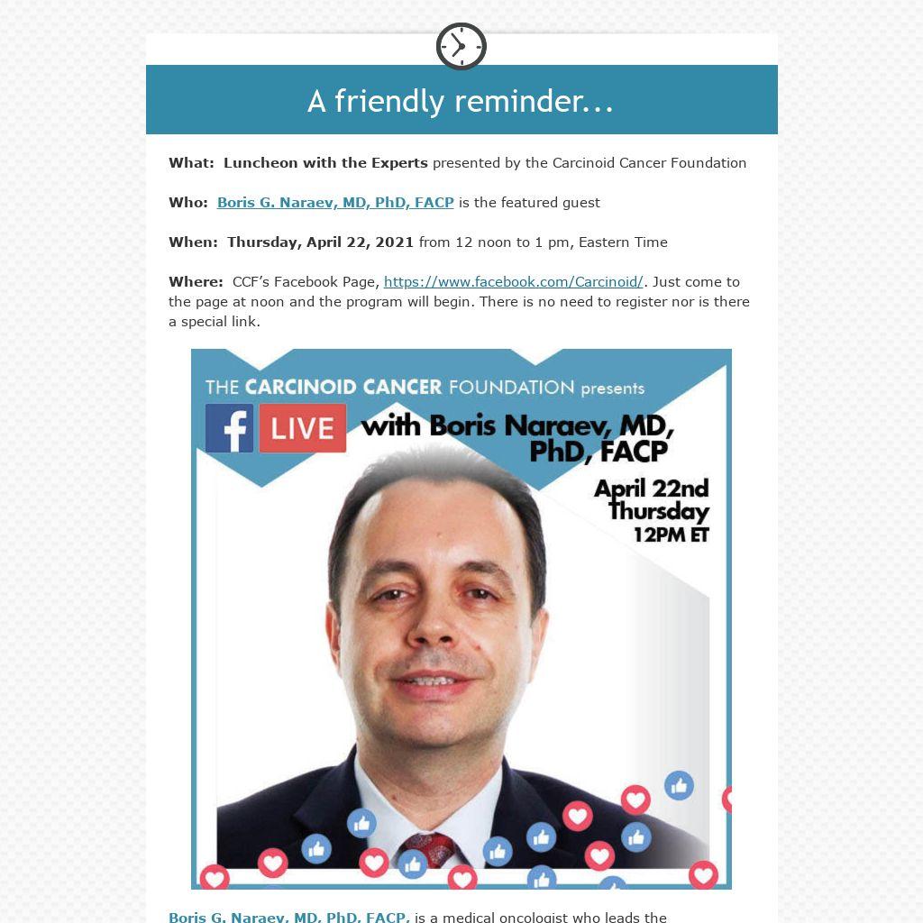 What: Luncheon with the Experts presented by the Carcinoid Cancer Foundation