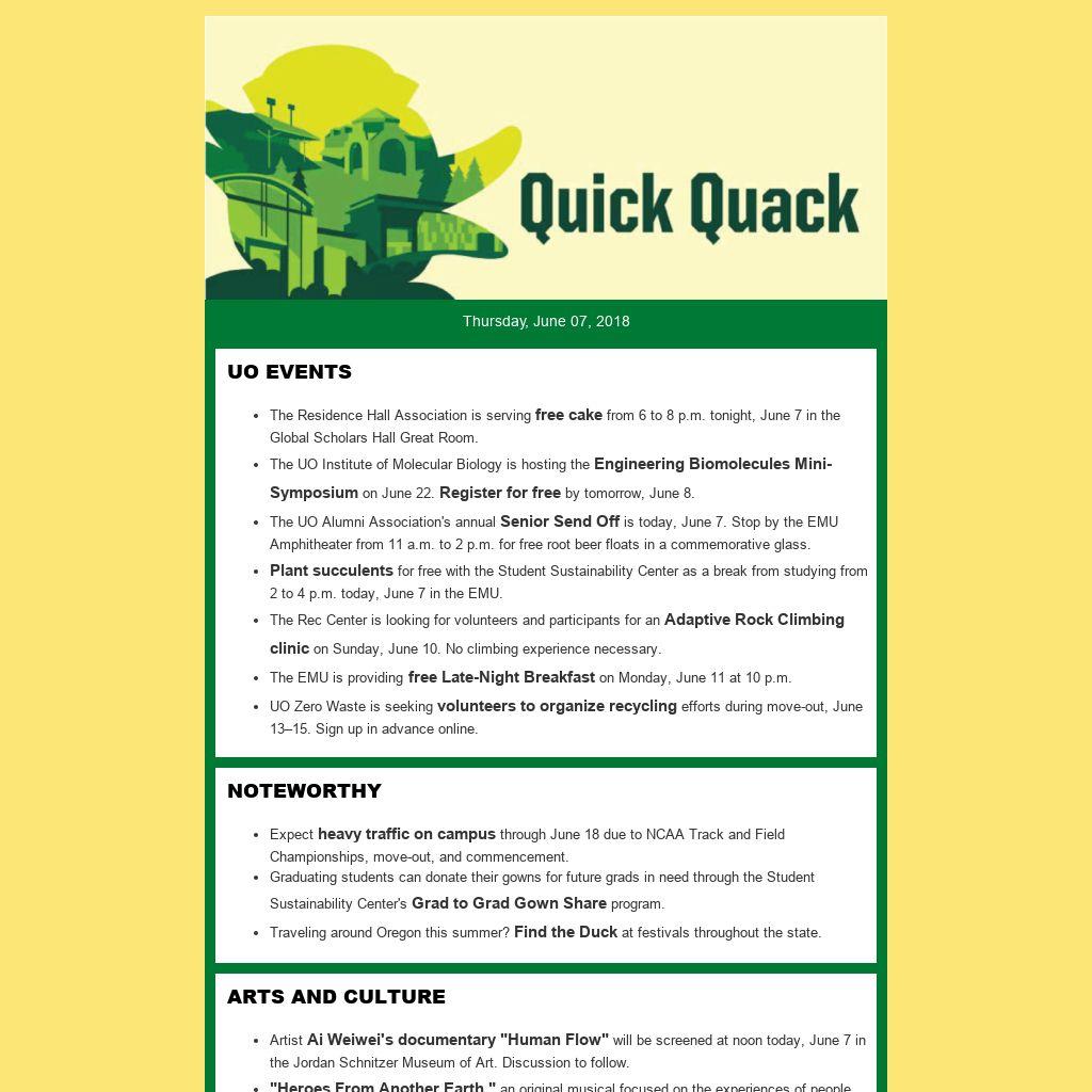The UO Alumni Association's annualSenior Send Off is today, June 7. Stop by the EMU Amphitheater from 11 a.m. to 2 p.m. for free root beer floats in a commemorative glass.
