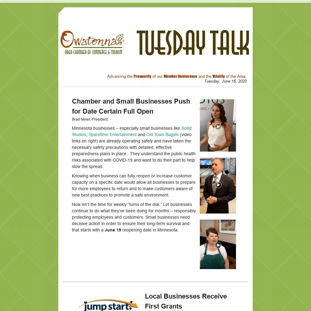 The first grant applications were reviewed and awarded this week (Awards happen weekly)! Grants provided to: Kleckers Kreations, Limberg Productions, Owatonna Fitness Center, The Music Space of Owatonna.
