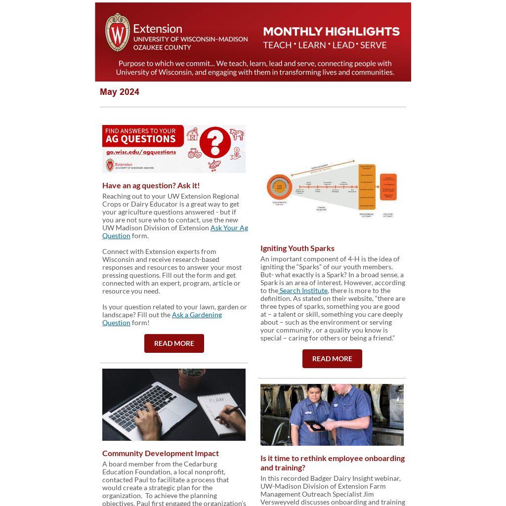 Reaching out to your UW Extension Regional Crops or Dairy Educator is a great way to get your agriculture questions answered - but if you are not sure who to contact, use the new UW Madison Division of Extension Ask Your Ag Question form.