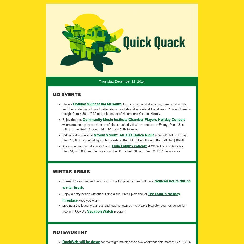 That's a wrap on fall term! Quick Quack will be taking a break until Thursday, Jan. 9, 2025.