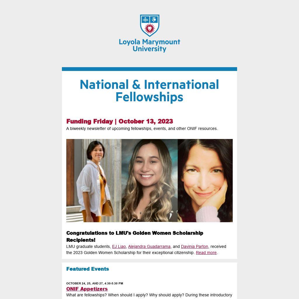A biweekly newsletter of upcoming fellowships, events, and other ONIF resources.