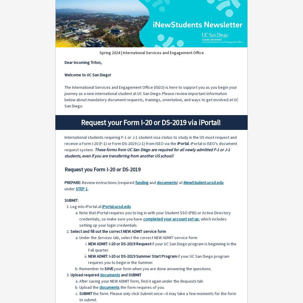- NEW ADMIT: I-20 or DS-2019 Request if your UC San Diego program is beginning in the Fall quarter.