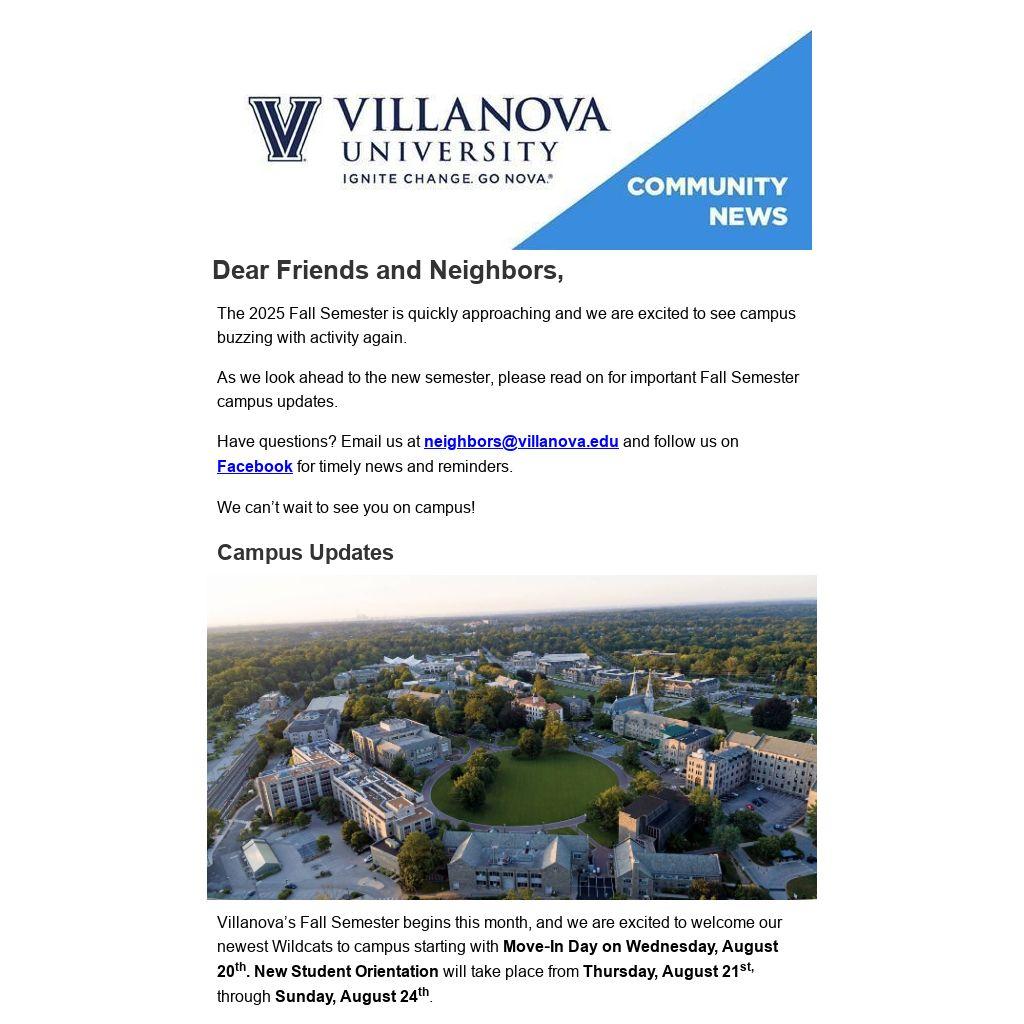 Please email neighbors@villanova.edu with questions.
