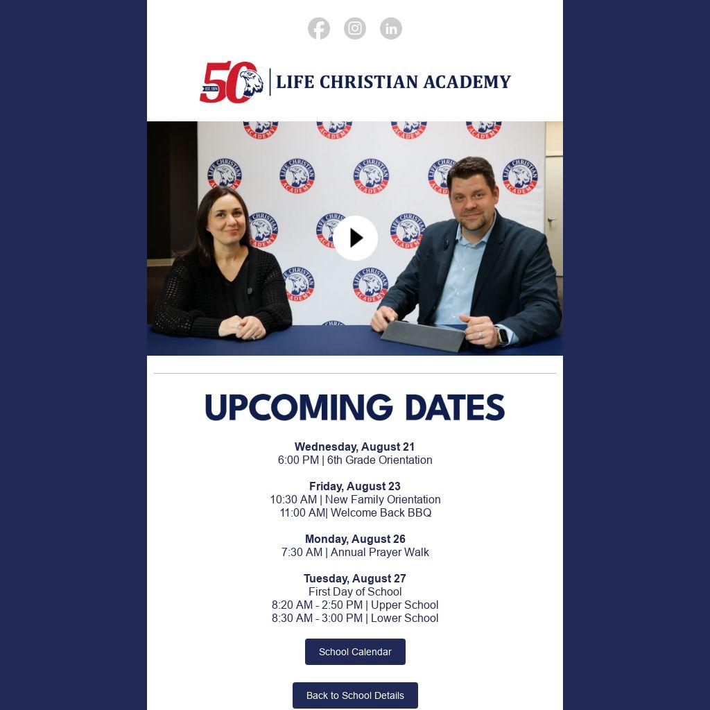 We are looking forward to a season full of teamwork, dedication, and school spirit. Thank you for your continued support of Life Christian Academy’s athletic programs. If you have any questions or need further information, please do not hesitate to contact me. Go Eagles!