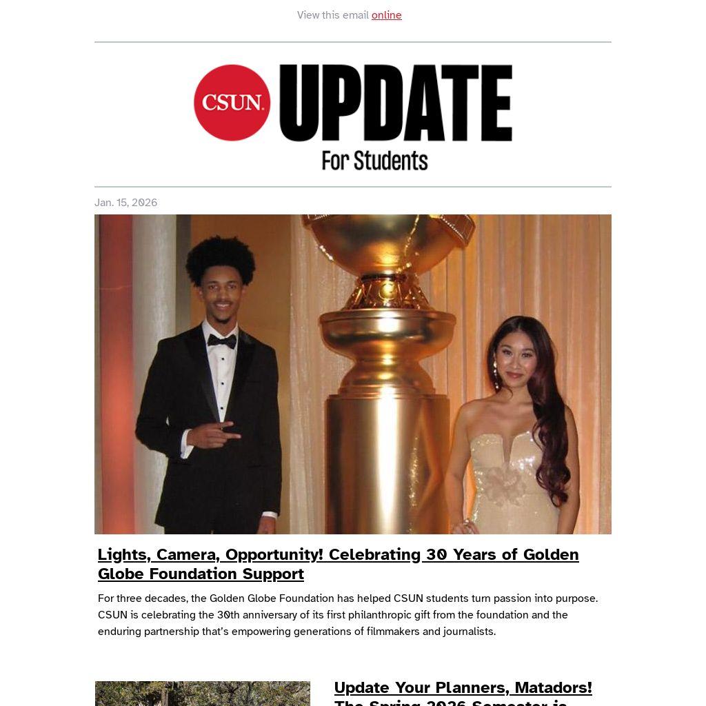 For three decades, the Golden Globe Foundation has helped CSUN students turn passion into purpose. CSUN is celebrating the 30th anniversary of its first philanthropic gift from the foundation and the enduring partnership that’s empowering generations of filmmakers and journalists.