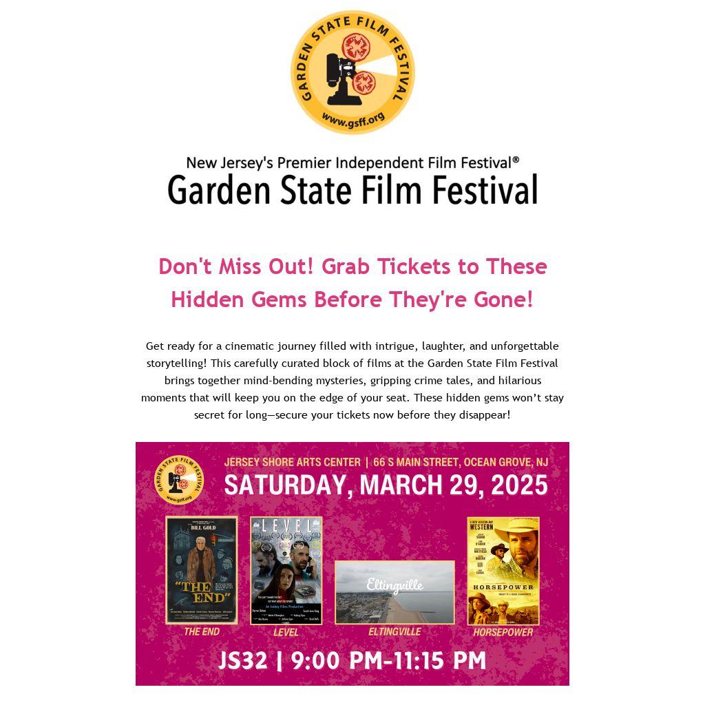 Get ready for a cinematic journey filled with intrigue, laughter, and unforgettable storytelling! This carefully curated block of films at the Garden State Film Festival brings together mind-bending mysteries, gripping crime tales, and hilarious moments that will keep you on the edge of your seat. These hidden gems won’t stay secret for long—secure your tickets now before they disappear!