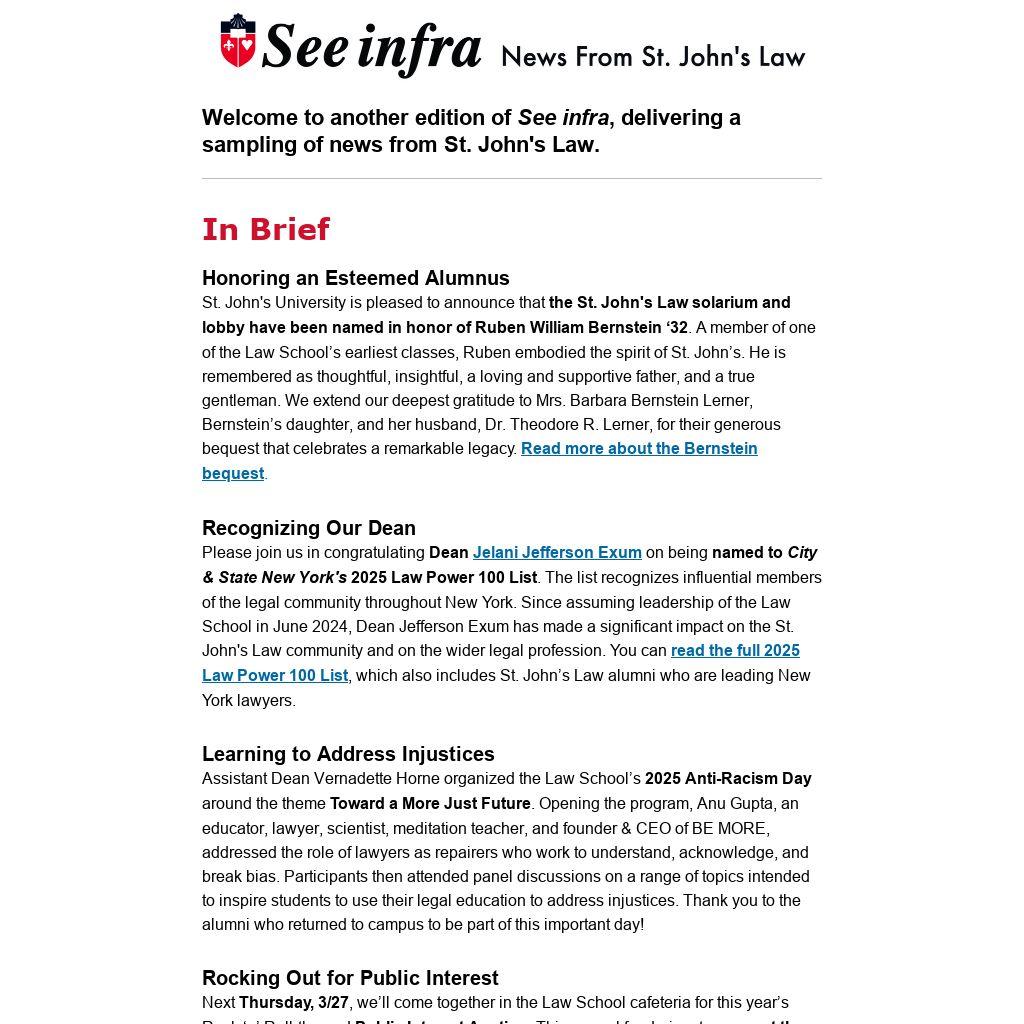 Note: By opting out of this email, you are opting out of all email communications from St. John's Law, including upcoming event emails, newsletters, and giving opportunities. If you would just like to be removed from the See infra newsletter, please email hallk1@stjohns.edu.