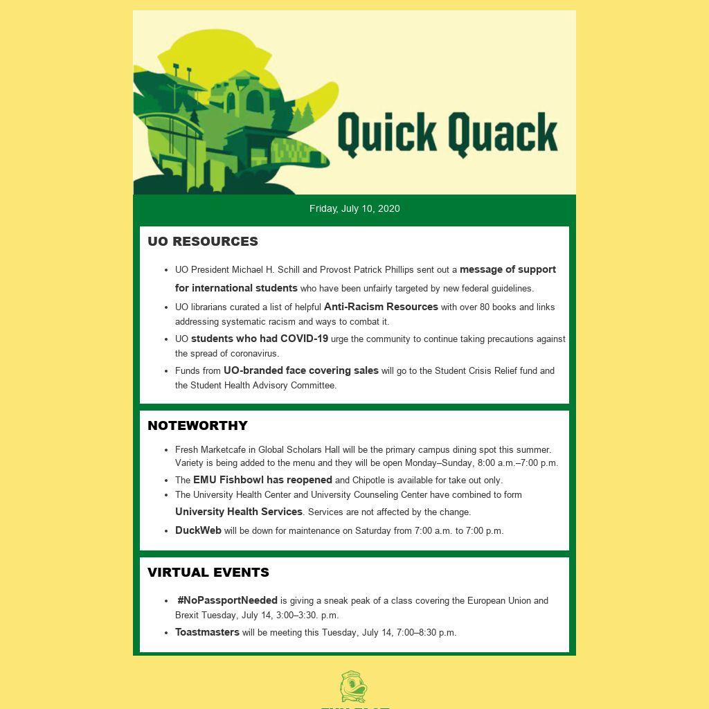 DuckWeb will be down for maintenance on Saturday from 7:00 a.m. to 7:00 p.m.