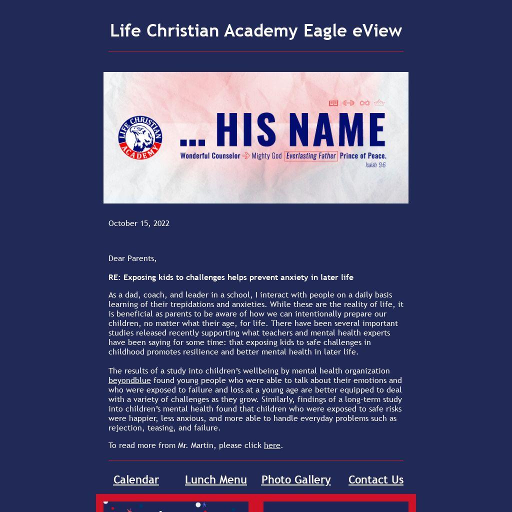 The month of October means Homecoming week is just around the corner at LCA! Activities for the week include: