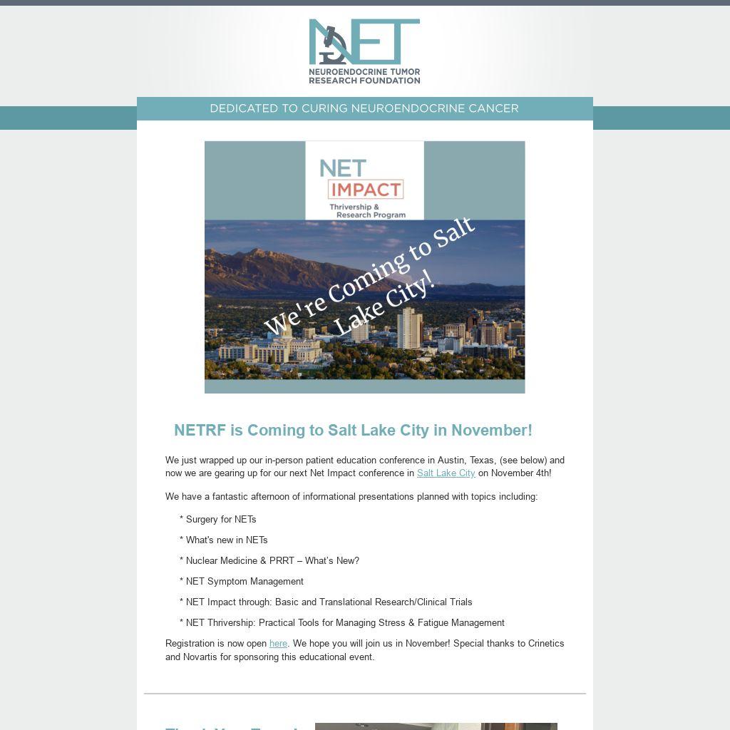 We just wrapped up our in-person patient education conference in Austin, Texas, (see below) and now we are gearing up for our next Net Impact conference in Salt Lake City on November 4th!