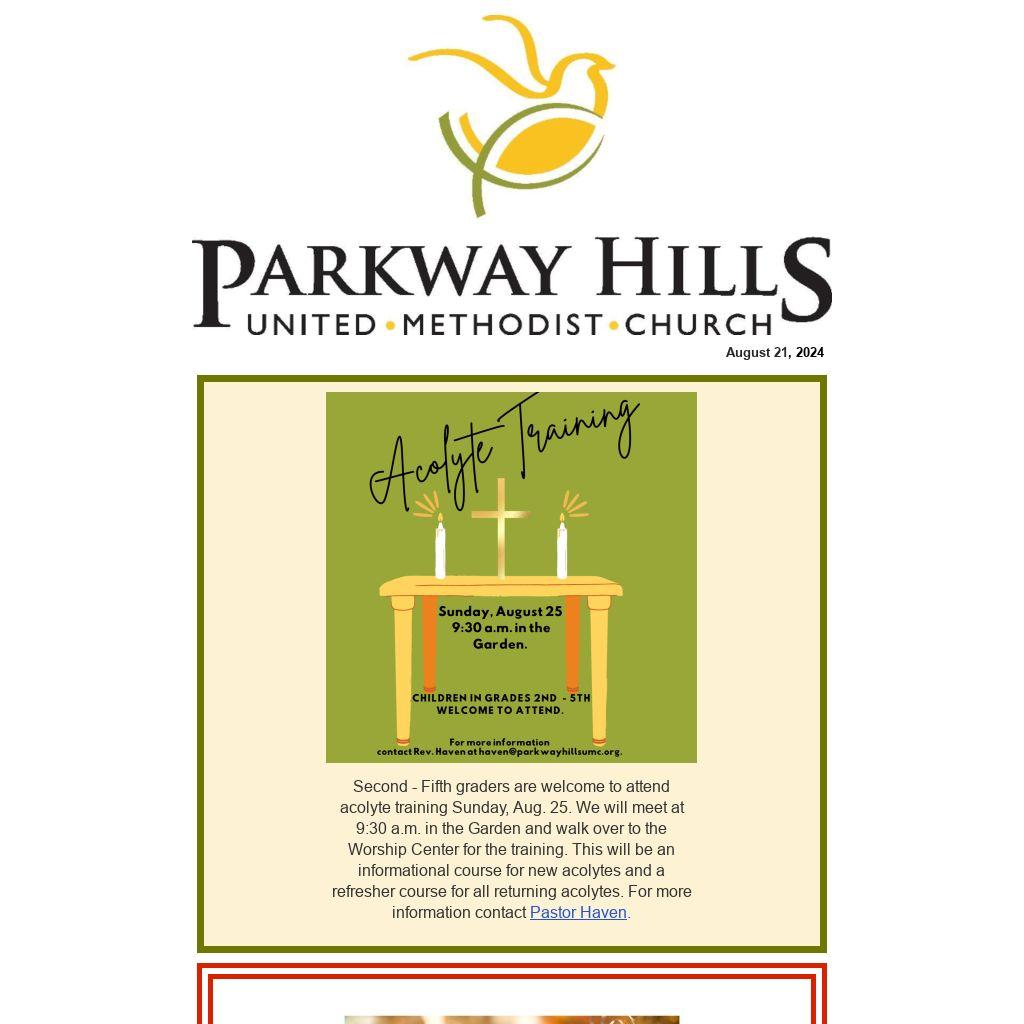 Tuesday, September 17 from 10:00 am to 1:00 pm, we will gather in the worship center at Parkway Hills with friends from Broadmeadow, Wells, and St. Luke UMC for a time of sharing, learning, song, prayer, and communion. Dean of the Chapel at Millsaps College, Rev. Dr. Ricky James will be our speaker and lead us through a time of thinking through the message in the book of Revelation. Lunch will be provided, and we ask that you register by Wednesday, September 11 so that we can adequately prepare. A $5 donation is requested to aid with covering the cost. We hope to see you there and hope you will reach out and invite a friend to join us! Register here.