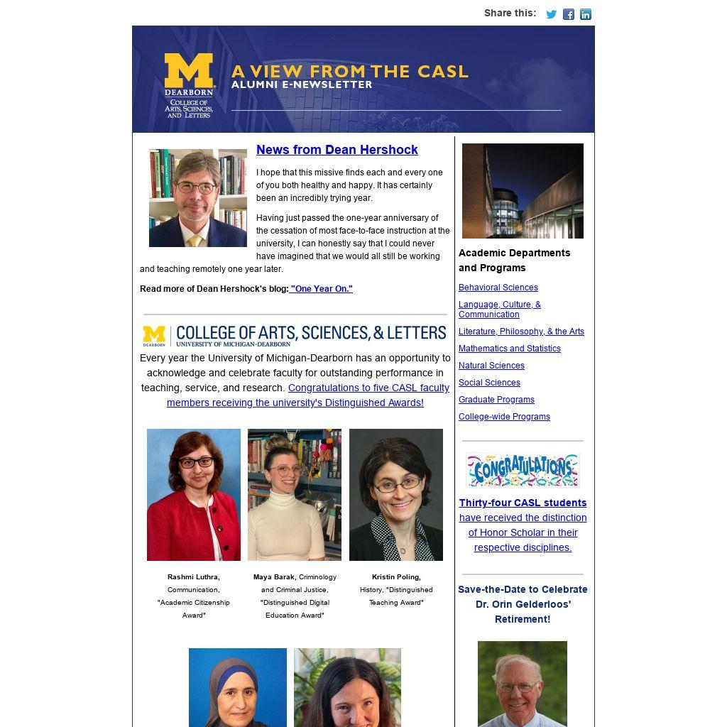 A virtual gathering will be held on Friday, May 21, 2021 to celebrate Dr. Gelderloos' retirement from UM-Dearborn. Dr. Gelderloos will present a Legacy Lecture as part of the celebration. Details to follow.
