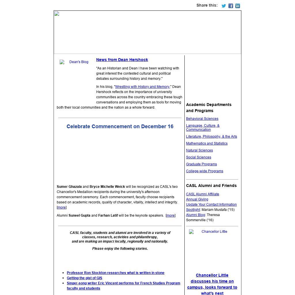 "A View from the CASL" is a quarterly e-newsletter for CASL alumni.
