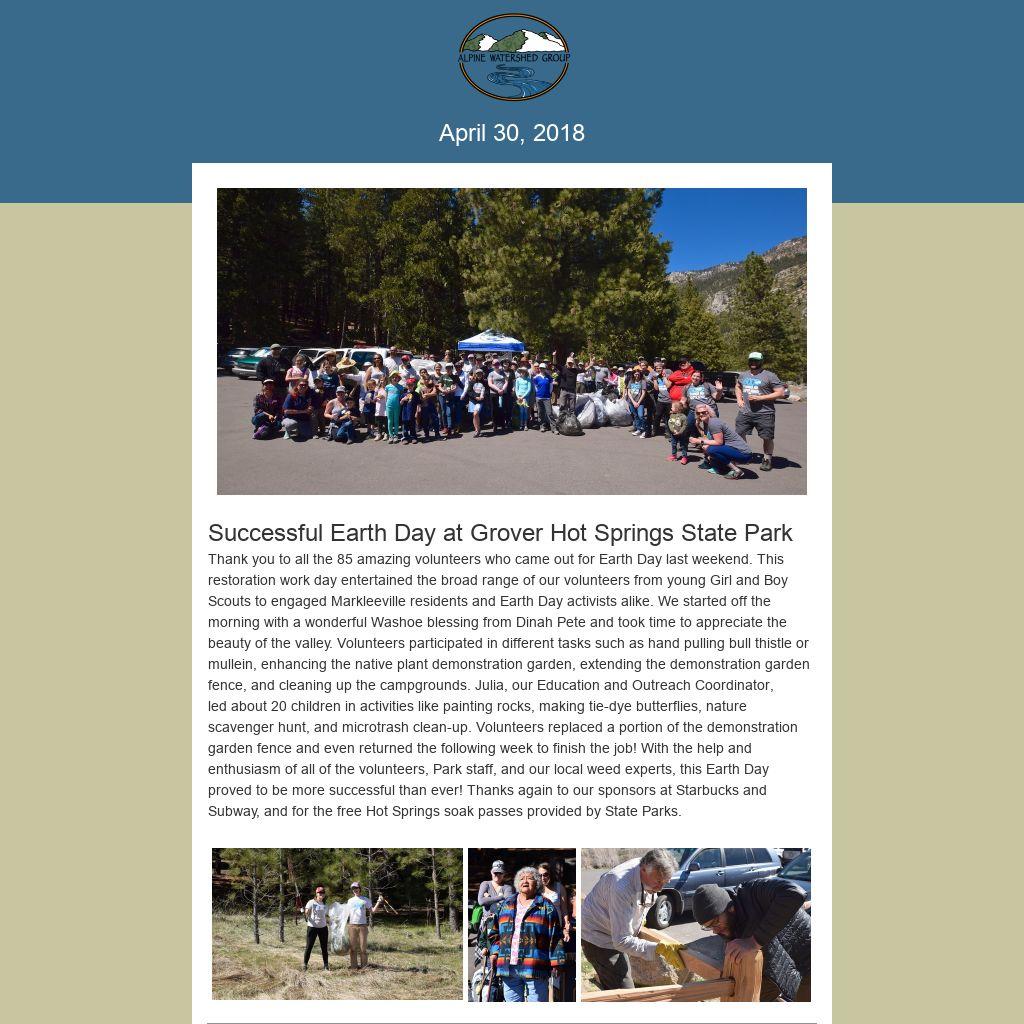 Thank you to all the 85 amazing volunteers who came out for Earth Day last weekend. This restoration work day entertained the broad range of our volunteers from young Girl and Boy Scouts to engaged Markleeville residents and Earth Day activists alike. We started off the morning with a wonderful Washoe blessing from Dinah Pete and took time to appreciate the beauty of the valley. Volunteers participated in different tasks such as hand pulling bull thistle or mullein, enhancing the native plant demonstration garden, extending the demonstration garden fence, and cleaning up the campgrounds. Julia, our Education and Outreach Coordinator, led about 20 children in activities like painting rocks, making tie-dye butterflies, nature scavenger hunt, and microtrash clean-up. Volunteers replaced a portion of the demonstration garden fence and even returned the following week to finish the job! With the help and enthusiasm of all of the volunteers, Park staff, and our local weed experts, this Earth Day proved to be more successful than ever! Thanks again to our sponsors at Starbucks and Subway, and for the free Hot Springs soak passes provided by State Parks.
