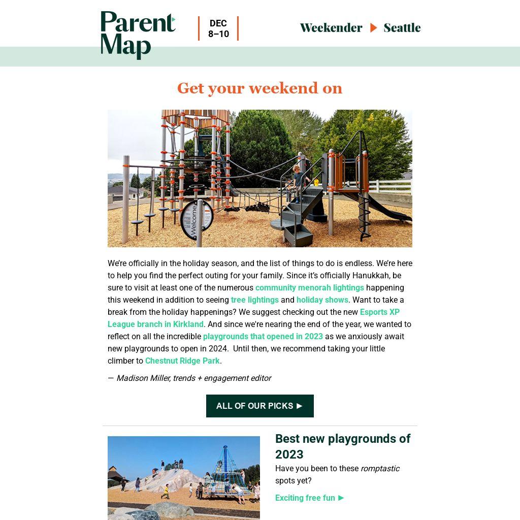 playgrounds that opened in 2023 as we anxiously await new playgrounds to open in 2024. Until then, we recommend taking your little climber to