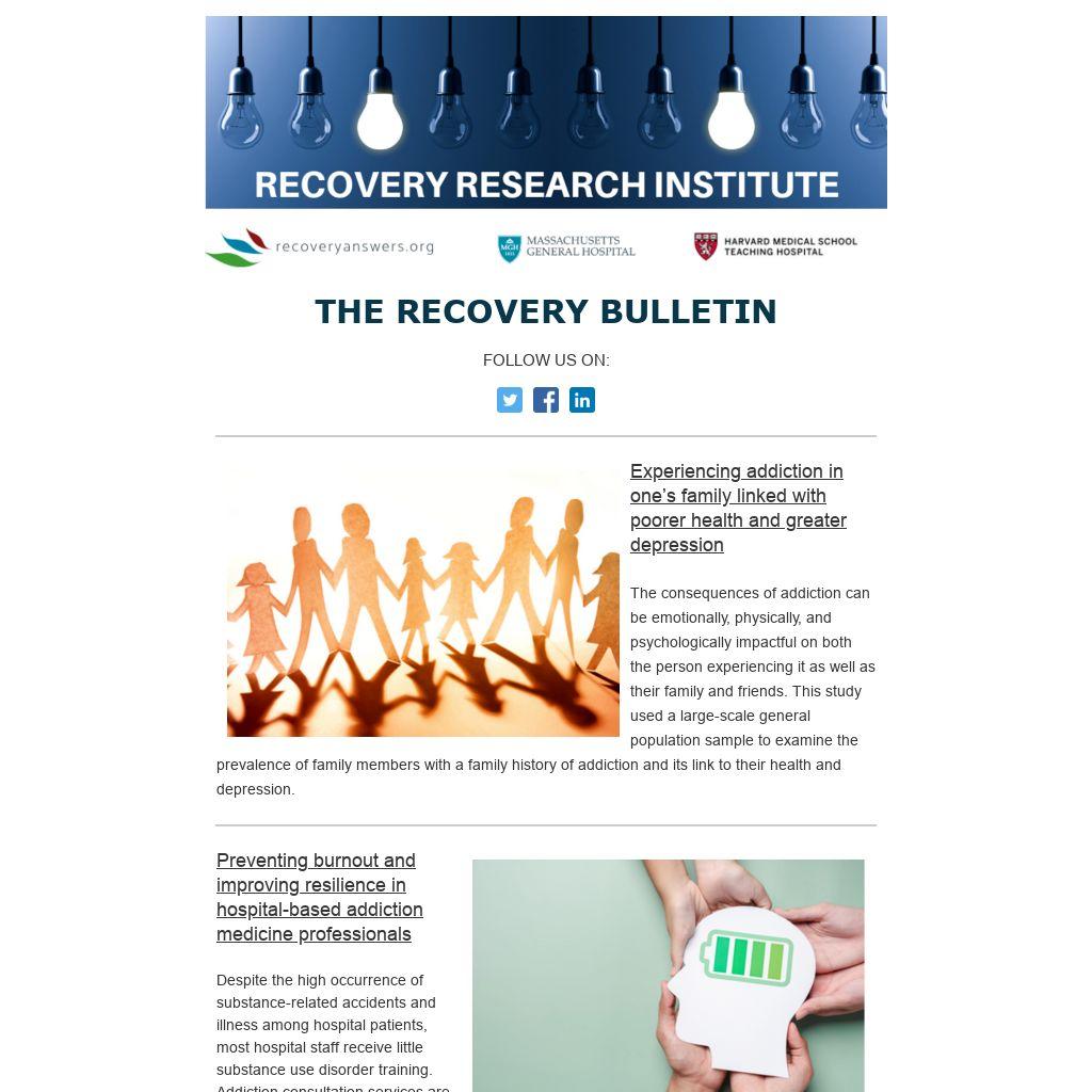 ABOUT: The Recovery Research Institute is a non-profit research institute of the Massachusetts General Hospital, a teaching hospital of Harvard Medical School.