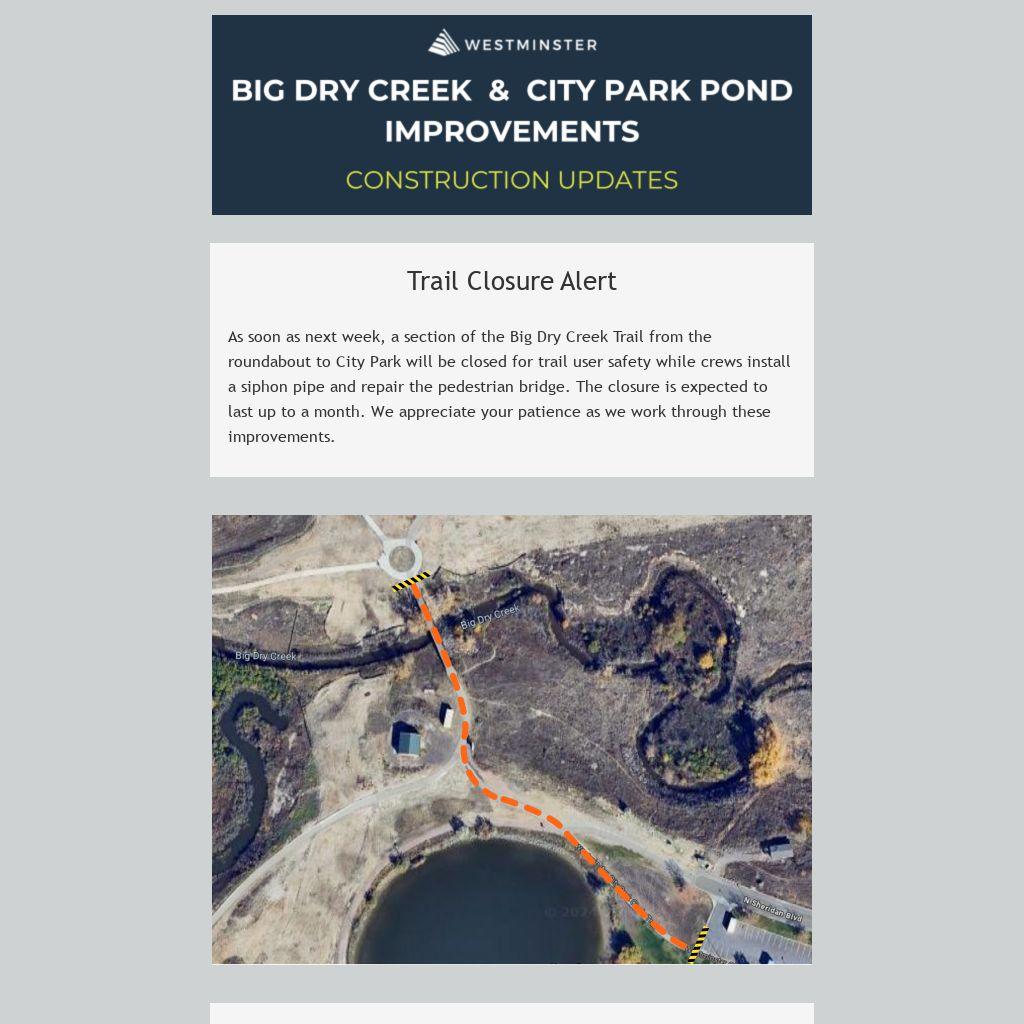 Project work is in full swing, and crews are working hard to improve the Big Dry Creek. Work happening now includes: