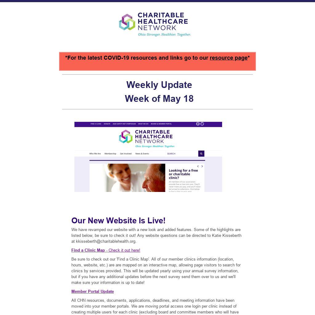 We have revamped our website with a new look and added features. Some of the highlights are listed below, be sure to check it out! Any website questions can be directed to Katie Kisseberth at kkisseberth@charitablehealth.org.