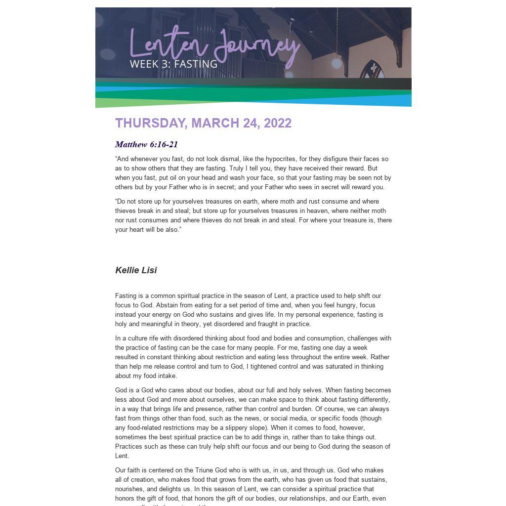 THURSDAY, MARCH 24, 2022 Matthew 6:16-21