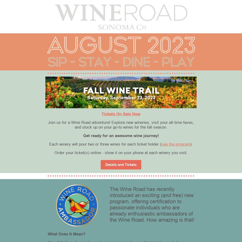 Join us for a Wine Road adventure! Explore new wineries, visit your all-time faves, and stock up on your go-to wines for the fall season.