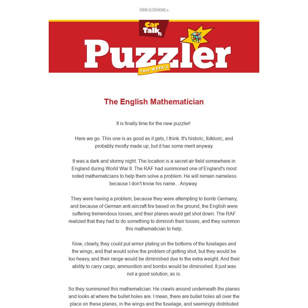 They were having a problem, because they were attempting to bomb Germany, and because of German anti-aircraft fire based on the ground, the English were suffering tremendous losses, and their planes would get shot down. The RAF realized that they had to do something to diminish their losses, and they summon this mathematician to help.