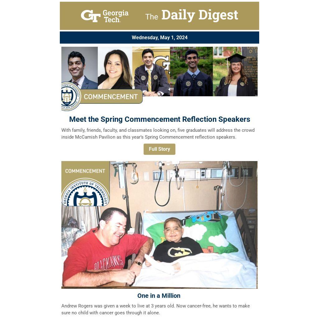 With family, friends, faculty, and classmates looking on, five graduates will address the crowd inside McCamish Pavilion as this year’s Spring Commencement reflection speakers.