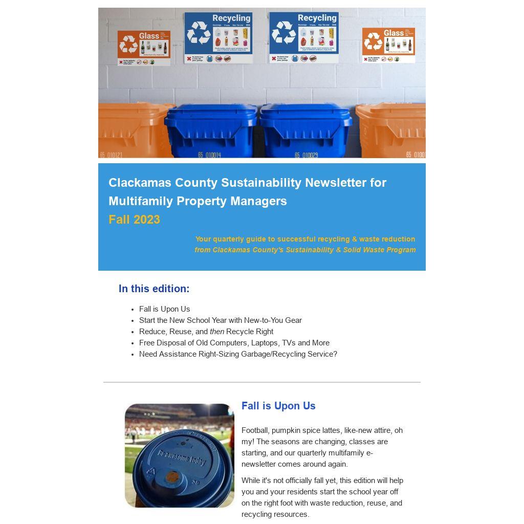 Clackamas County Sustainability Newsletter for Multifamily Property Managers Fall 2023