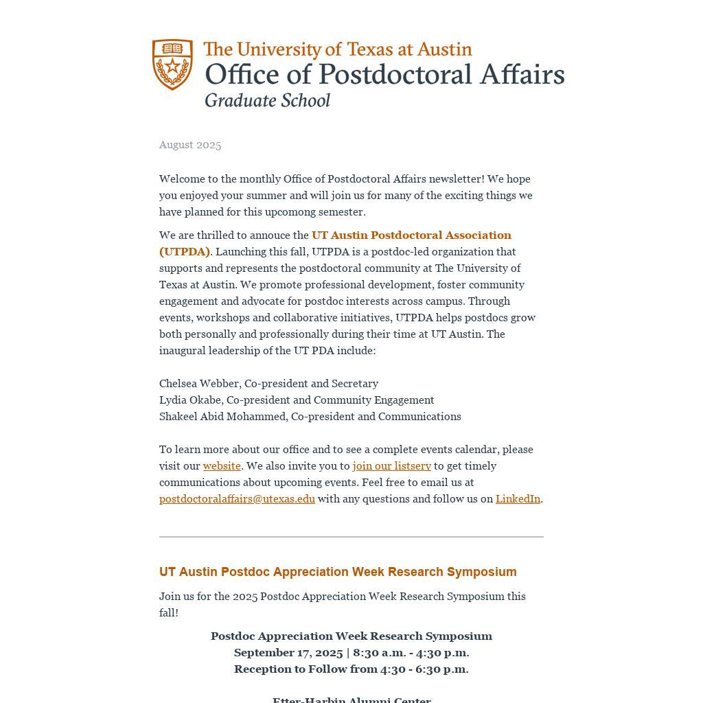 For any questions, please email postdoctoralaffairs@utexas.edu.