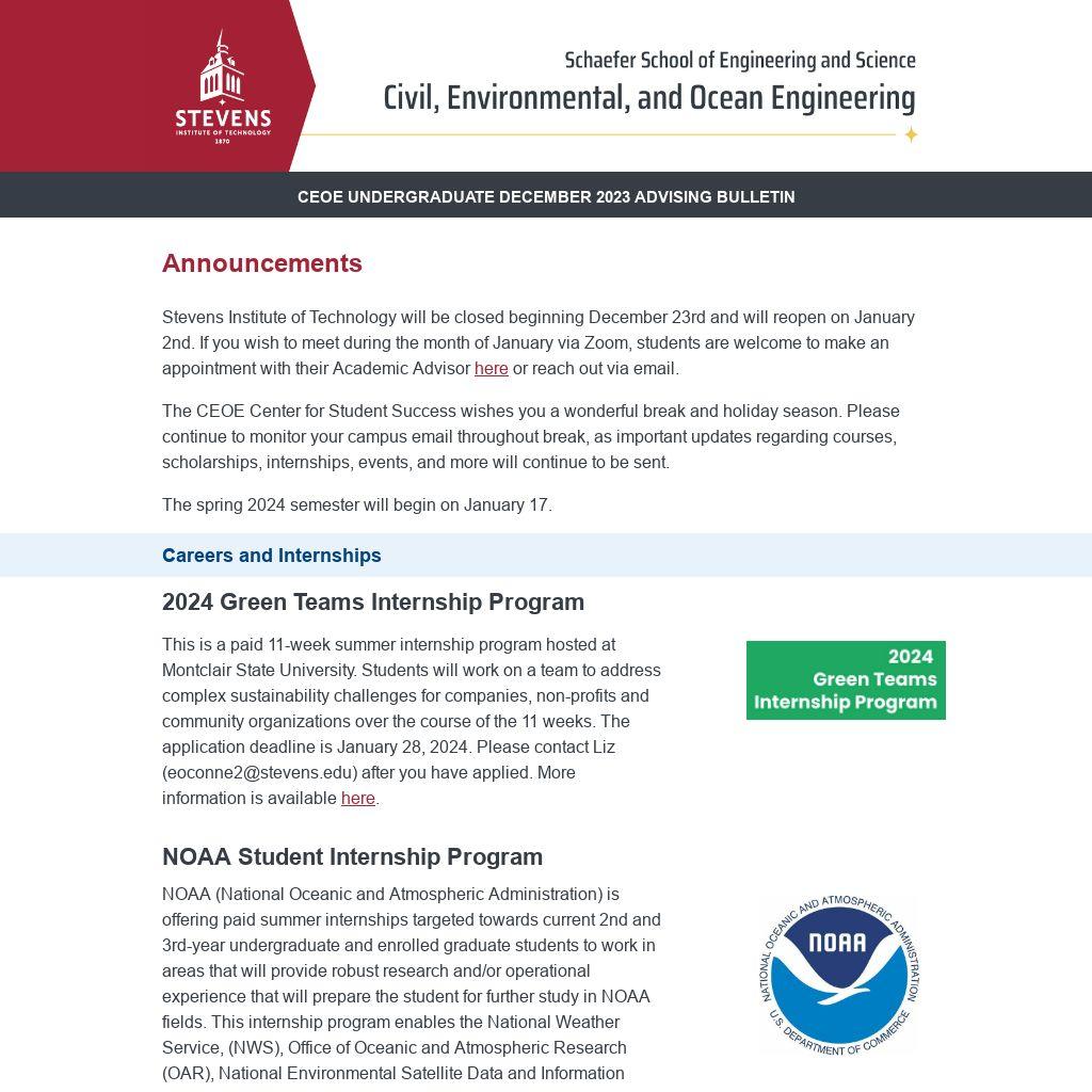 CEOE UNDERGRADUATE DECEMBER 2023 ADVISING BULLETIN