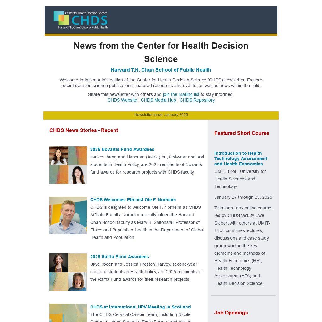 This three-day online course, led by CHDS faculty Uwe Siebert with others at UMIT-Tirol, combines lectures, discussions and case study group work in the key elements and methods of Health Economics (HE), Health Technology Assessment (HTA) and Health Decision Science.