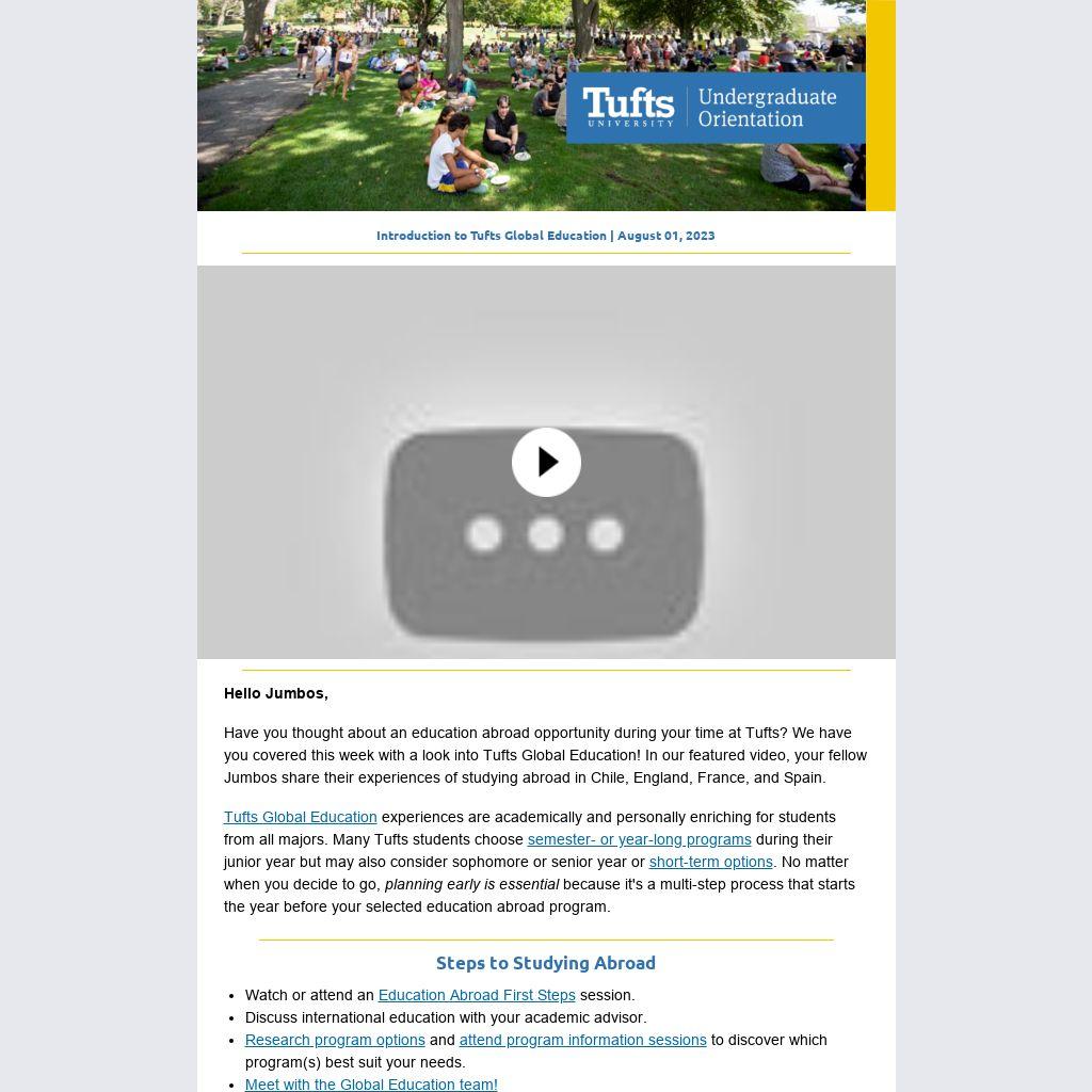 Introduction to Tufts Global Education | August 01, 2023 |