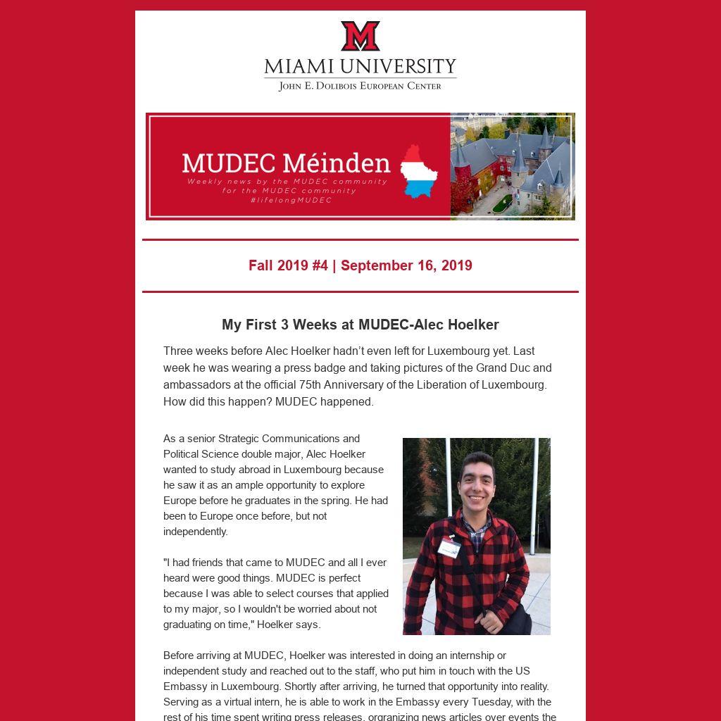 Audience participation is what makes this newsletter special, so if you would like to contribute an article or have any other ideas or suggestions, please write to us at eur-mudec.newsletter@miamioh.edu.