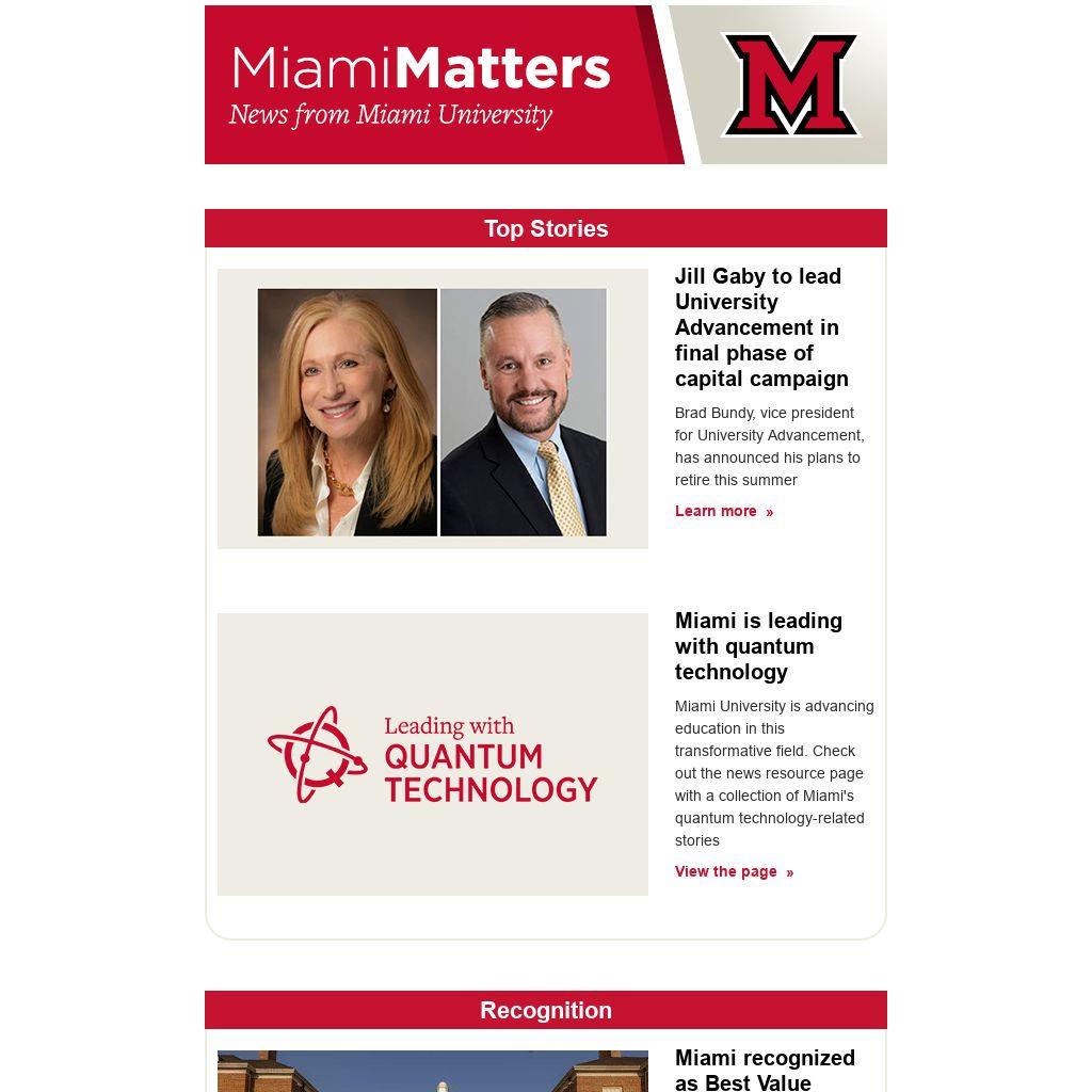 The next Miami Matters issue will be published July 11. No classes, offices closed July 4