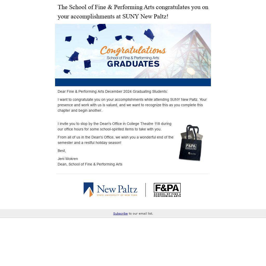 I invite you to stop by the Dean's Office in College Theatre 118 during our office hours for some school-spirited items to take with you.