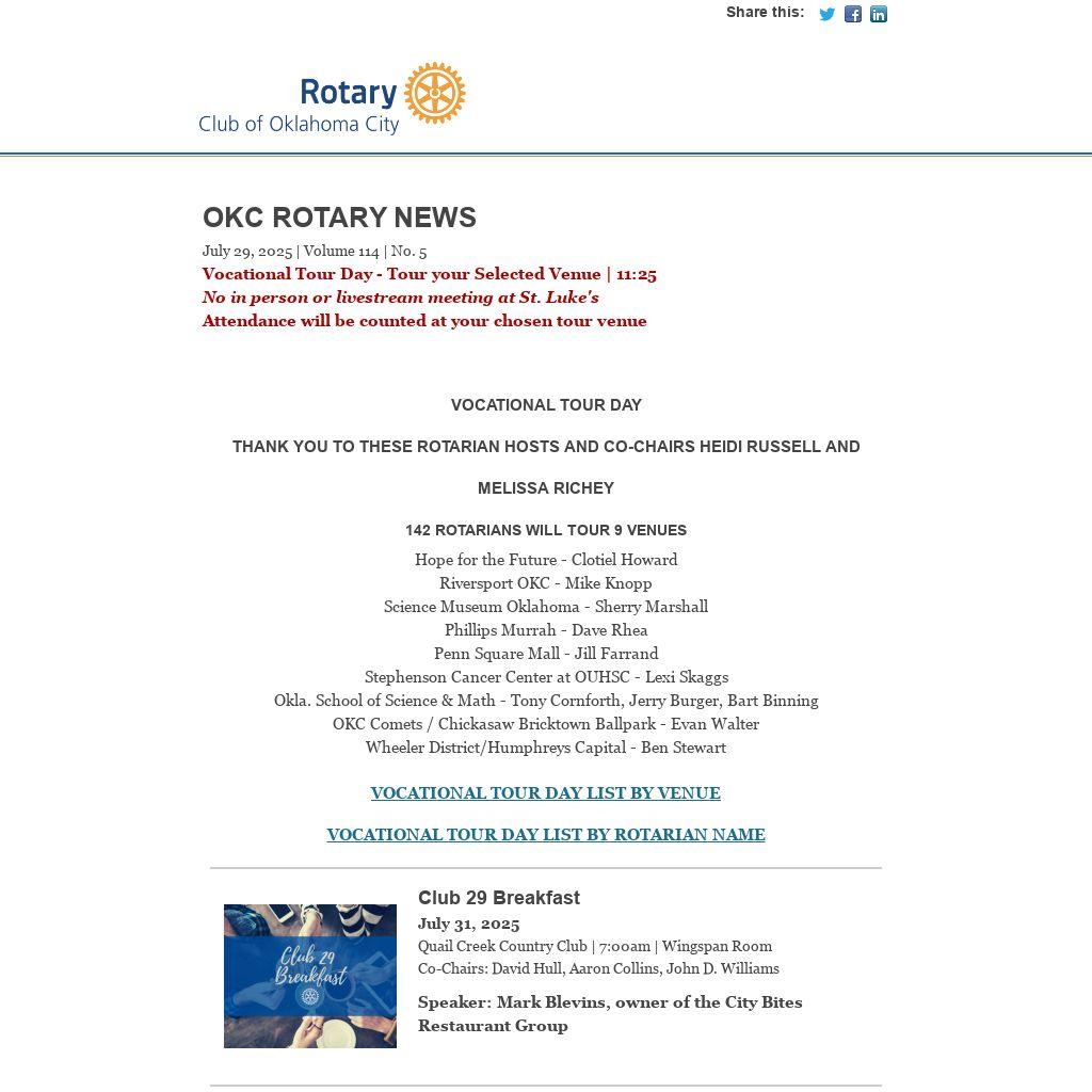 As we’ve seen in the headlines, the communities in and around Kerrville, Texas were devastated by flooding earlier this month. Our Rotary Club of Oklahoma City Board and the Rotary Club 29 Foundation Board have approved the contribution of $10,000 of disaster relief funds to Rotary District 5840’s Disaster Relief Fund to support the relief efforts that will continue in the days, months, and years ahead.
