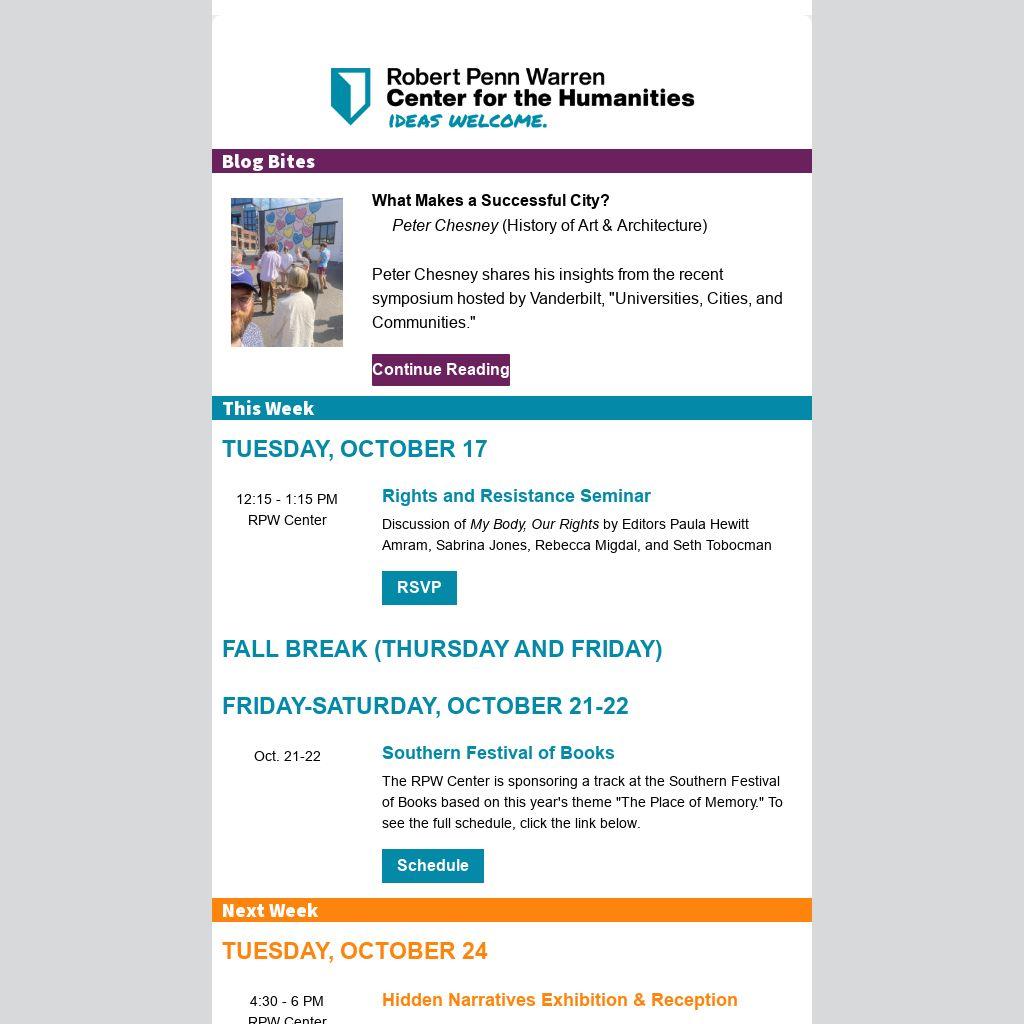 The RPW Center is sponsoring a track at the Southern Festival of Books based on this year's theme "The Place of Memory." To see the full schedule, click the link below.