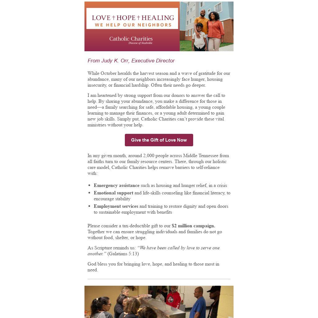 I am heartened by strong support from our donors to answer the call to help. By sharing your abundance, you make a difference for those in need—a family searching for safe, affordable housing, a young couple learning to manage their finances, or a young adult determined to gain new job skills. Simply put, Catholic Charities can’t provide these vital ministries without your help.